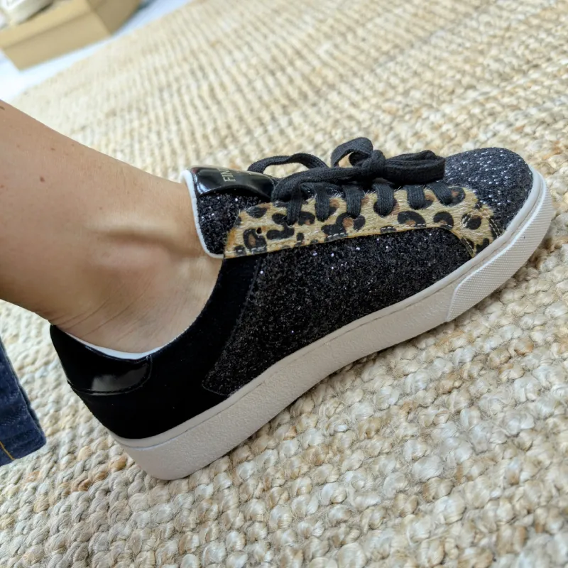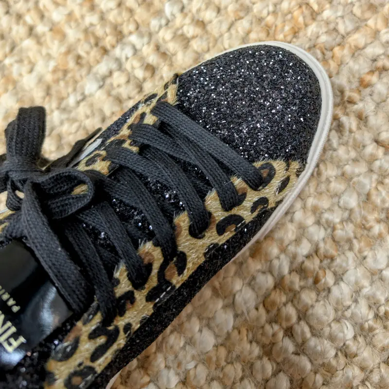 Les lacets noirs s’harmonisent parfaitement avec le design global, tandis que la bande en motif léopard pour les lacets apporte une note audacieuse et tendance. Ces baskets sont idéales pour le quotidien, permettant de créer des looks variés, que ce soit pour une journée décontractée ou une sortie entre amis.