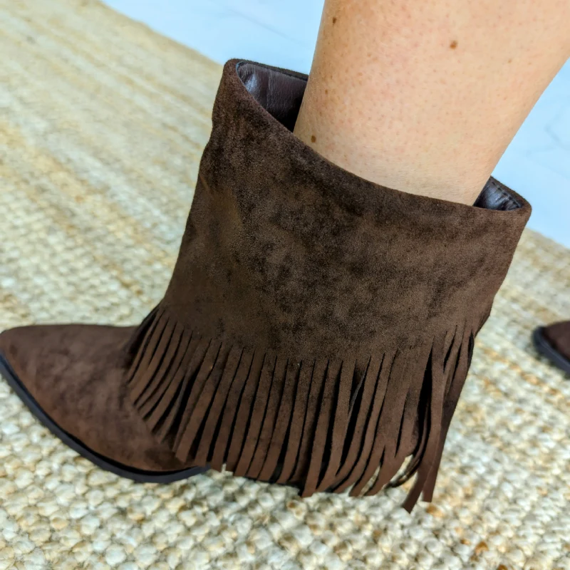 Bottines Cowboy Basses en Daim Chocolat