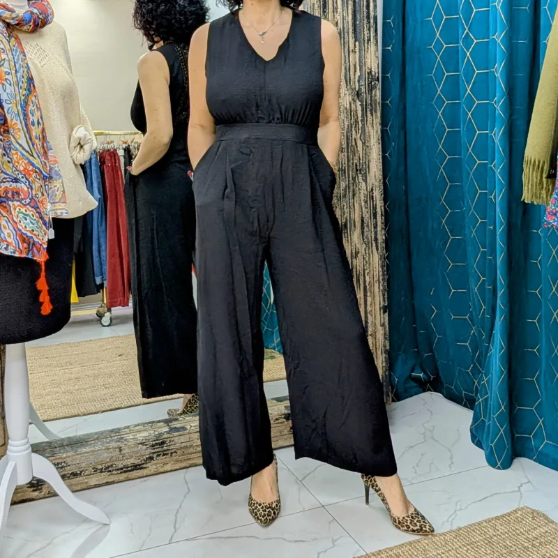À la recherche d’une pièce unique qui allie confort et style ? Notre combinaison noire sans manches est le choix parfait pour toutes les occasions. Conçue pour mettre en valeur votre silhouette, cette combinaison fluide se distingue par sa coupe large et sa taille cintrée, offrant une allure à la fois chic et décontractée.