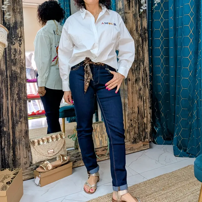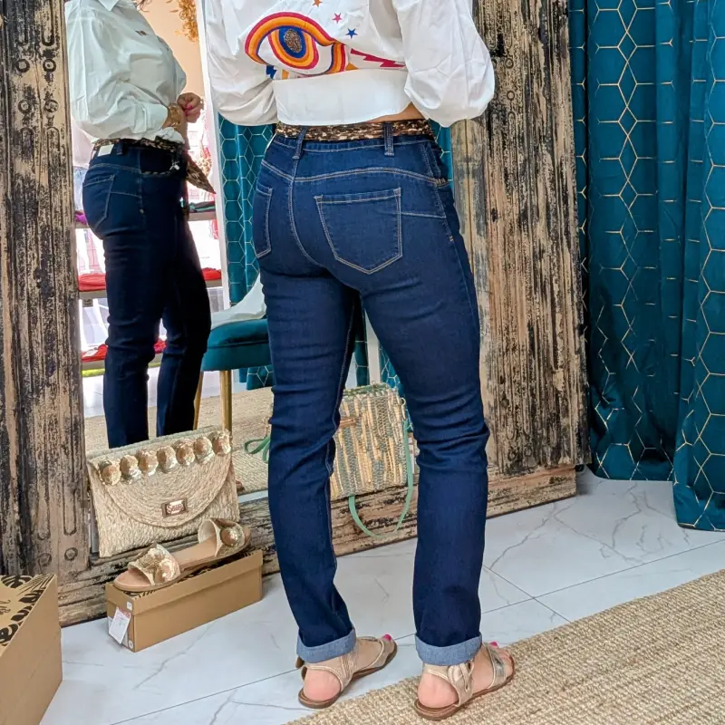 Ce jean se distingue par son design soigné et ses détails raffinés. La coupe droite est à la fois élégante et polyvalente, permettant de le porter aussi bien pour des occasions décontractées que pour des sorties plus habillées. Le petit revers au bas des jambes ajoute une touche de sophistication, tout en permettant de dévoiler une paire de chaussures stylées.
