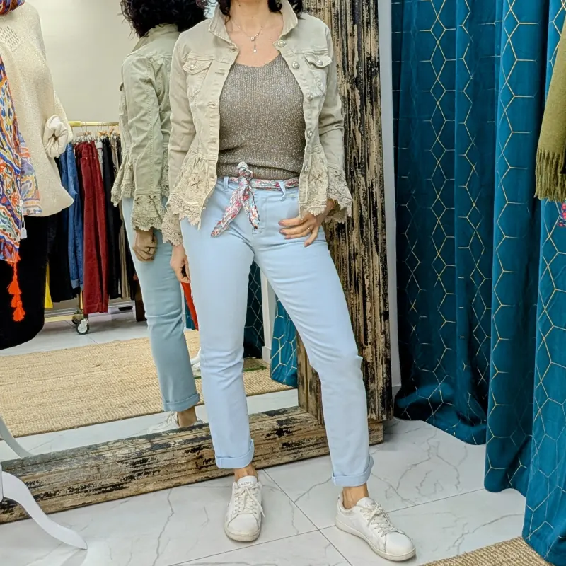 Avec sa couleur douce et sa coupe confortable, le pantalon chino bleu ciel est idéal pour le printemps. Il se marie parfaitement avec des chemises légères, des t-shirts ou même des pulls fins. Associez-le à des baskets blanches pour un look décontracté ou à des mocassins pour une tenue plus habillée. Quelle que soit l’occasion, ce pantalon est un choix polyvalent qui ne manquera pas de faire sensation.