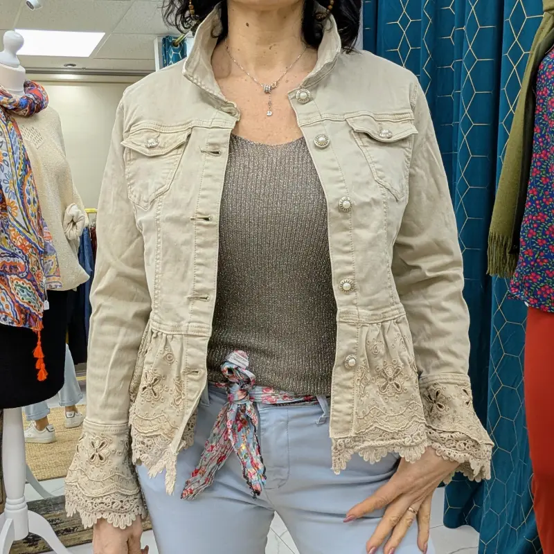 En résumé, cette veste en jean taupe est bien plus qu’un simple vêtement. C’est une pièce maîtresse qui reflète votre sens du style et votre originalité. Ne manquez pas l’occasion d’ajouter cette pièce unique à votre collection. Faites le choix de l’élégance et de la qualité avec notre veste en jean, et laissez-vous séduire par ses détails enchanteurs et son confort inégalé.