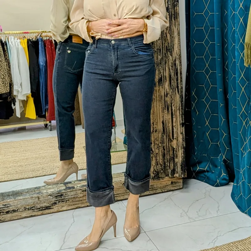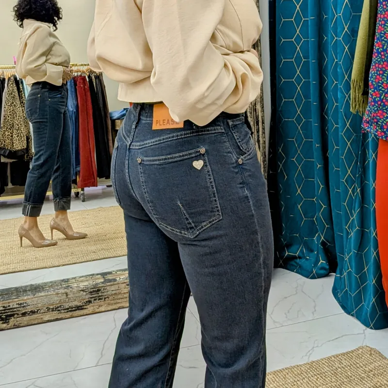 Jean Bleu Foncé de Coupe Droite avec Grand Revers – Marque PLEASE