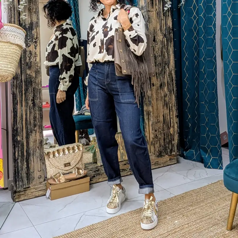 La chemise « PLEASE » est incroyablement polyvalente et peut être intégrée dans de nombreuses tenues. Que vous souhaitiez l’associer à un jean pour un look décontracté ou à un pantalon habillé pour une occasion spéciale, elle saura rehausser votre style. Les imprimés vache apportent une touche de caractère et de personnalité, faisant de cette chemise un choix parfait pour celles qui aiment se démarquer avec audace.
