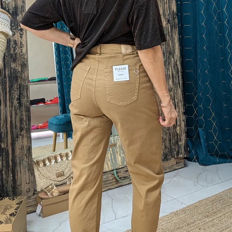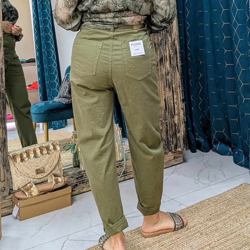 Découvrez la collection de pantalons vintage de la marque italienne PLEASE, où le style rencontre le confort. Ces deux modèles, l’un en couleur camel et l’autre en kaki, sont conçus pour apporter une touche de sophistication à votre garde-robe tout en restant décontractés. Fabriqués en 97% coton et 3% élasthanne, ces pantalons offrent une toile douce et agréable au toucher, garantissant un confort optimal tout au long de la journée.