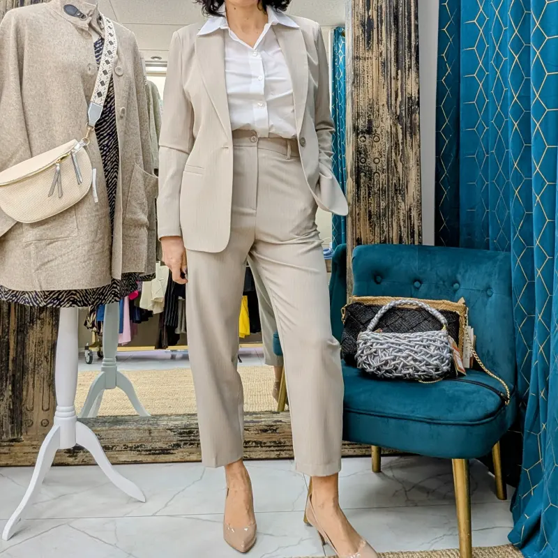 La veste de costume PLEASE est non seulement élégante, mais elle est également extrêmement polyvalente. Vous pouvez la porter aussi bien au bureau qu’à des événements formels. Associée à une chemise blanche et un pantalon noir, elle crée un look professionnel impeccable. Pour une sortie le week-end, associez-la à un t-shirt simple et à un jean pour un style décontracté mais soigné.