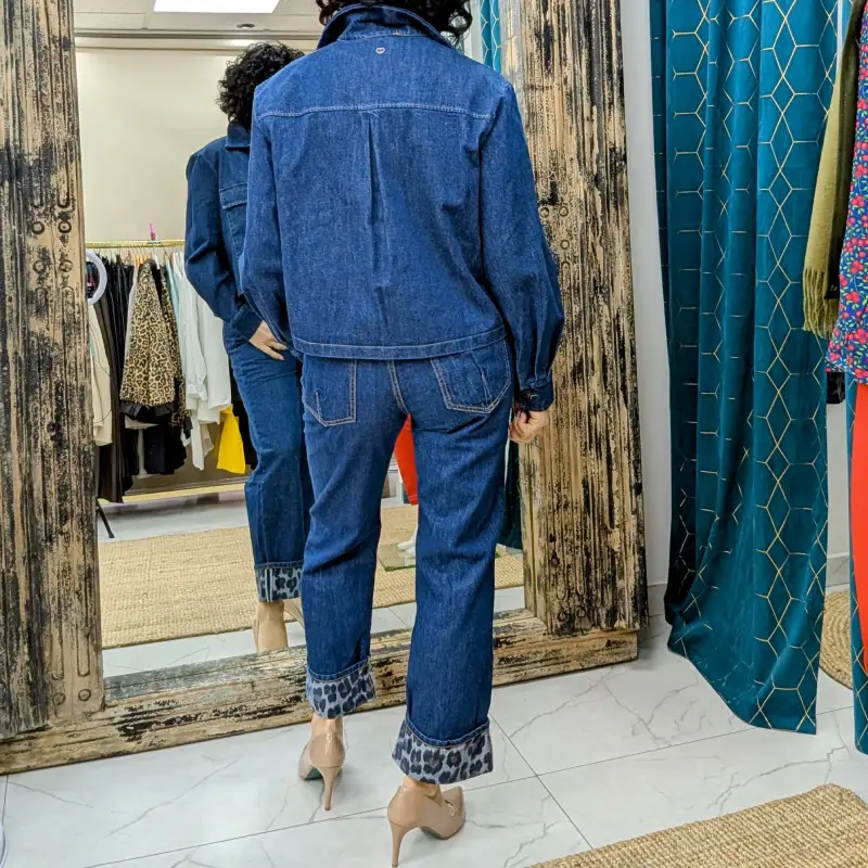 En résumé, la veste en jean bleu foncé de la marque italienne PLEASE est un must-have pour toute fashionista. Avec son intérieur en léopard, sa coupe droite et ses poches pratiques, elle combine style, confort et fonctionnalité. N’attendez plus pour ajouter cette pièce essentielle à votre collection et afficher votre sens du style avec audace !