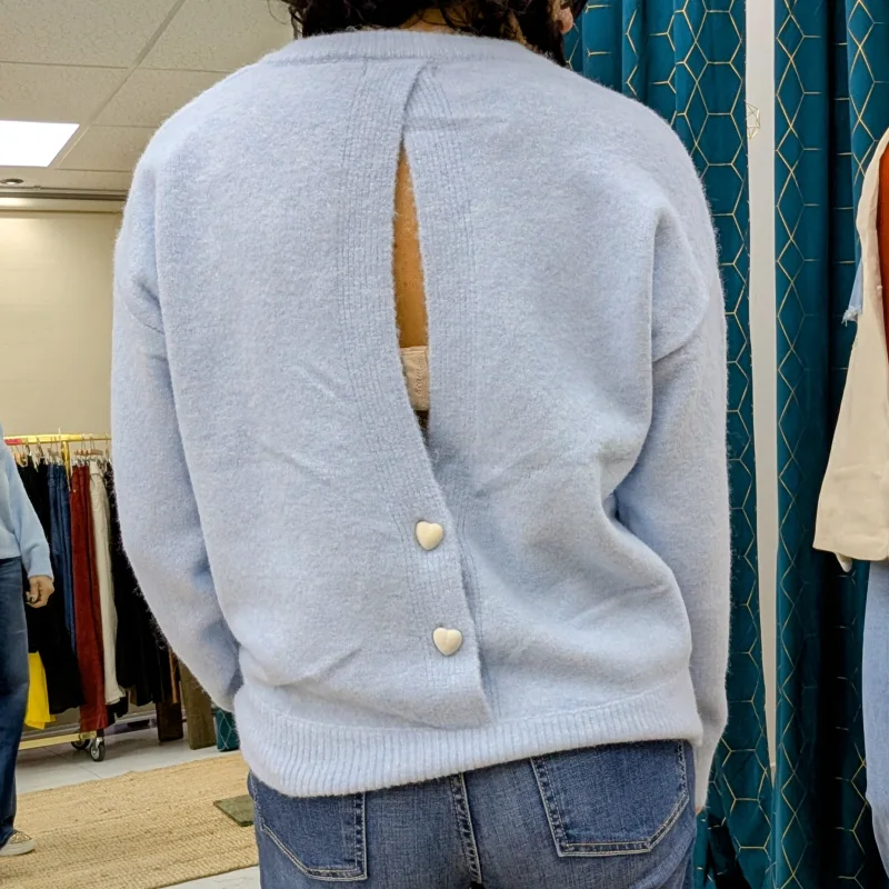 Une des caractéristiques les plus intéressantes de ce pull est la fente ouverte dans le dos, qui apporte une touche de sophistication et de sensualité à l’ensemble. Cette fente est subtilement resserrée par deux petits boutons en forme de cœur, ajoutant une dimension ludique et romantique au design. Ces détails soignés témoignent de l’attention portée à chaque aspect de la conception, rendant ce pull vraiment unique.