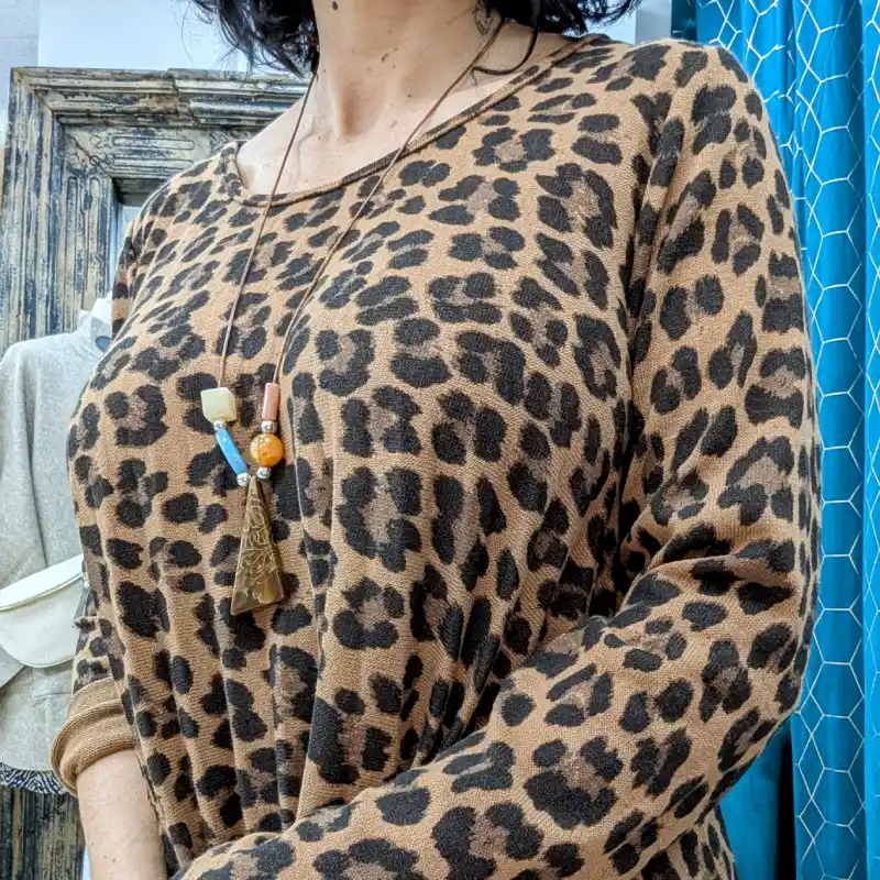 Opter pour notre robe courte à manches longues en léopard, c’est choisir un vêtement qui allie confort, style et qualité. Avec sa coupe flatteuse et ses matériaux de haute qualité, elle deviendra rapidement l’une de vos pièces préférées. N’attendez plus pour ajouter une touche sauvage à votre garde-robe !