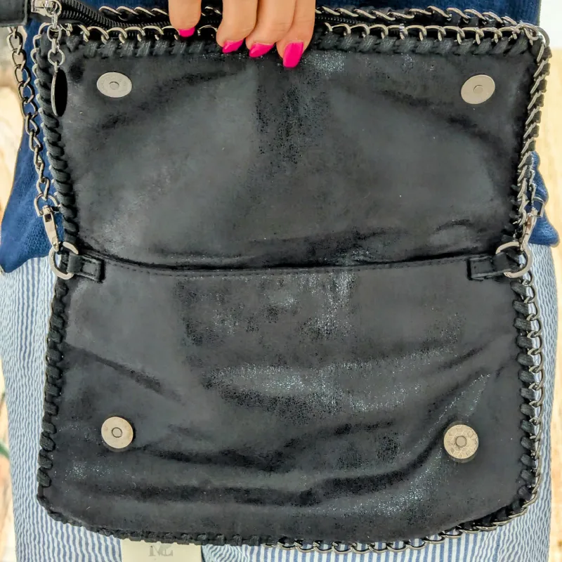 Sac à Main Noir en Velours Brillant